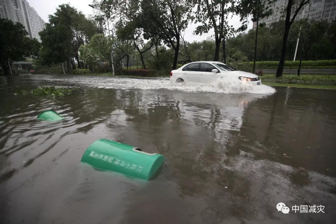 △2018年9月,超强台风“山竹”给广东沿海带来狂风暴雨,深圳道路被淹。