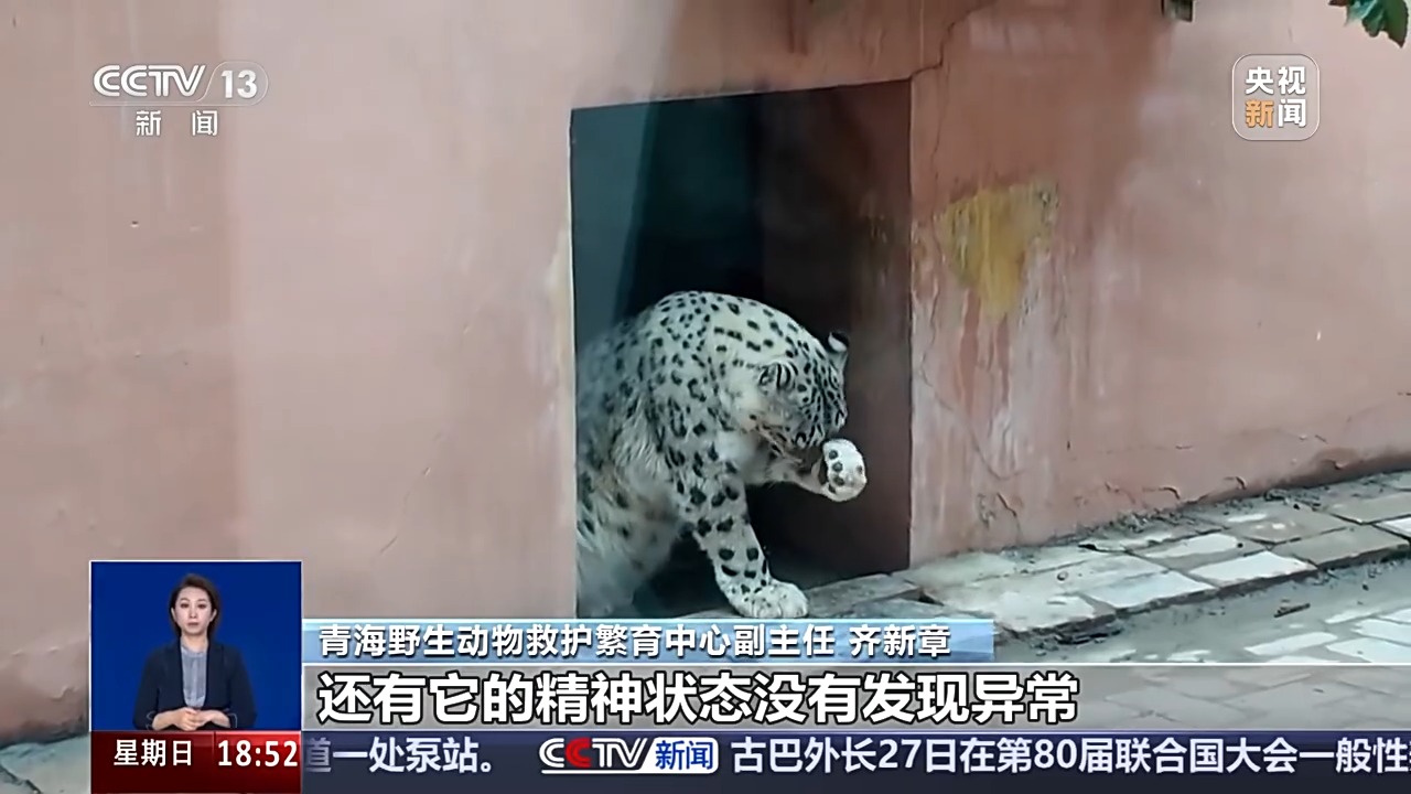 青海野生动物救护繁育中心副主任 齐新章:它的身体外观和精神状态都没有发现异常。目前,它在雪豹繁育基地生活,整体的生理和心理状态都比较正常,我们也会密切观察,找一个合适的时机再把它接回豹馆。